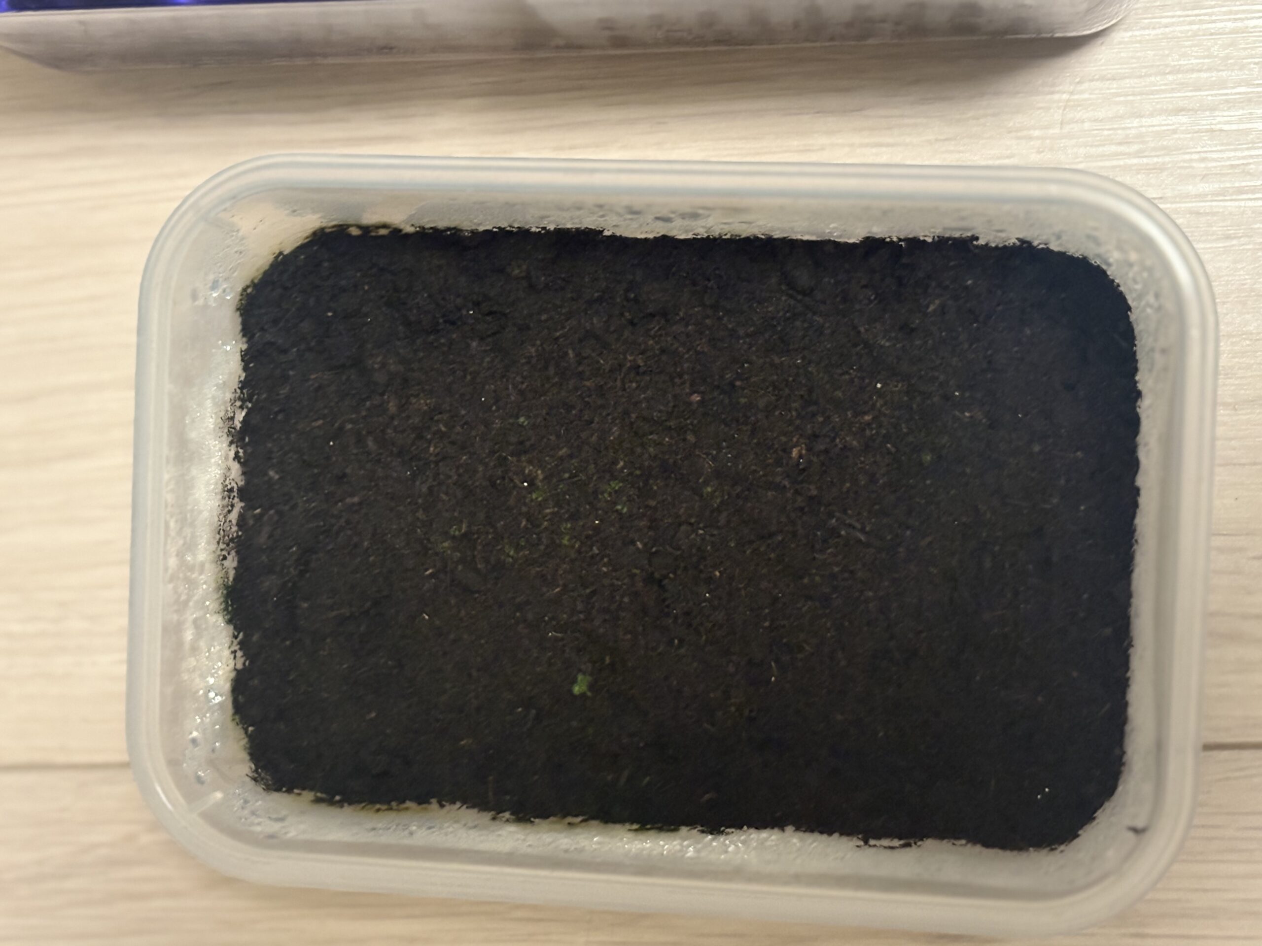 いつも通りに300均のタッパーにジフィー種まきミックスを敷き胞子を蒔きました。