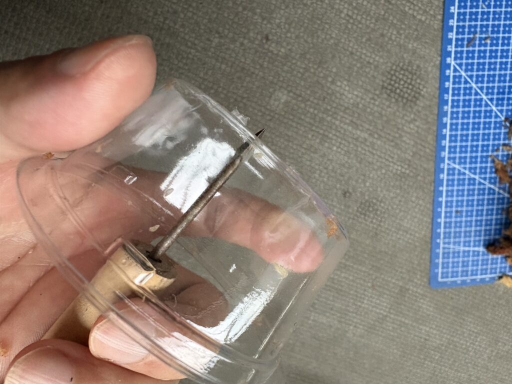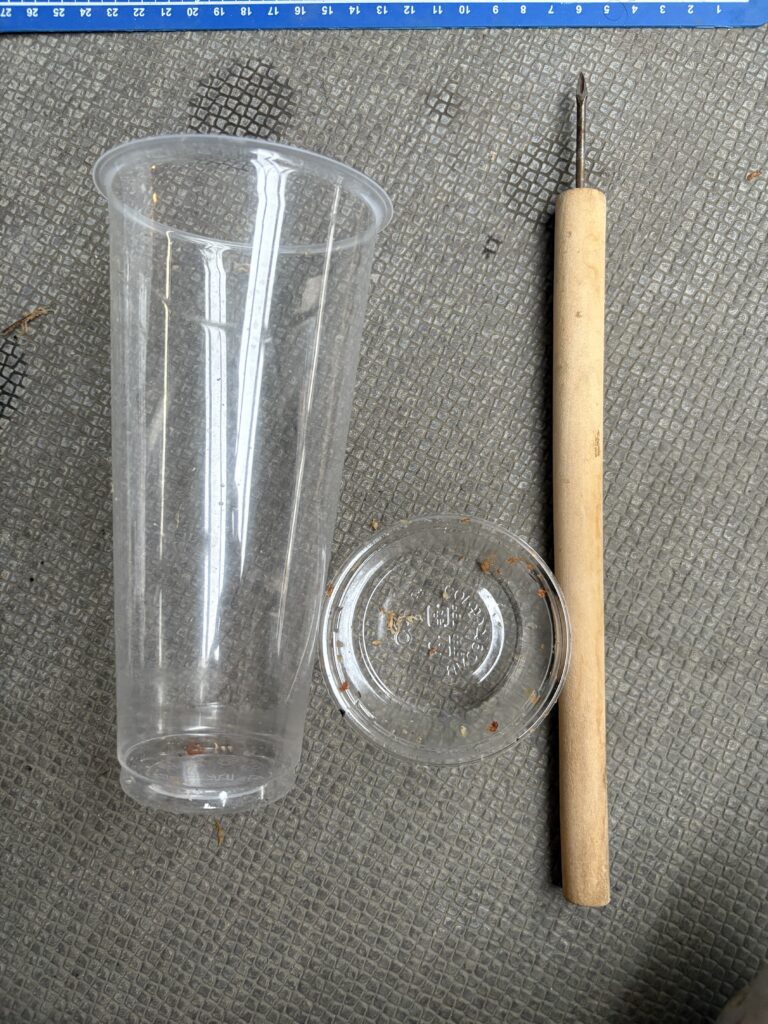 まずはプリン?カップに通気用の穴を開けてきます!! 4,5個穴を開けれればオッケーなので次の工程へ